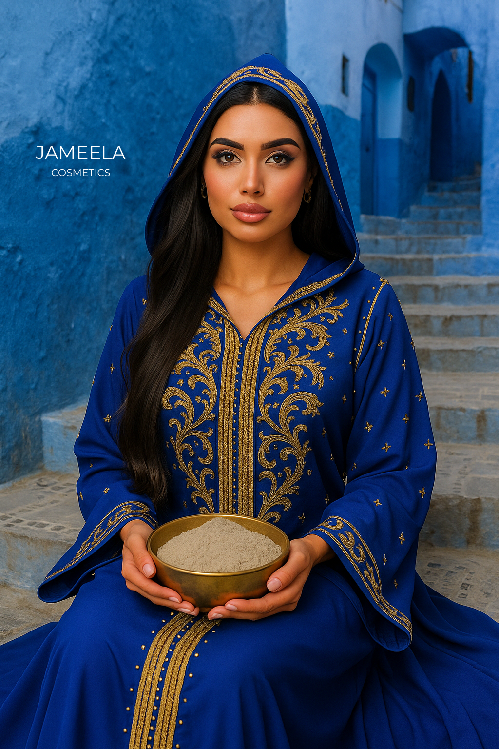 Our Ghassoul Powder is 100% pure and sourced directly from the mineral rich clay beds of Morocco’s Atlas Mountains. Used for centuries in hammam rituals, this volcanic clay is prized for its ability to absorb toxins, tighten pores, and balance oil production — all while preserving the skin’s natural moisture barrier.